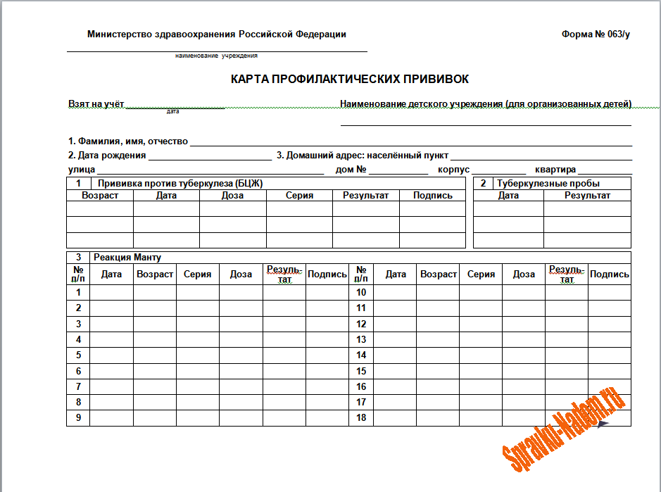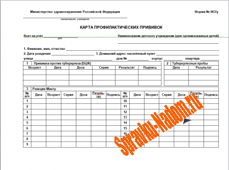 Карта профилактических прививок 063-у формы