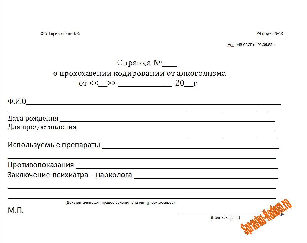 Как получить справку о кодировании от алкоголизмаСправка о кодировании