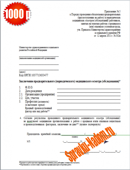 Профессии бывают очень разнообразные, есть среди них и те, которые относят к категории «вредных», то есть они могут нанести ущерб здоровью. Тем, кто устраивается на подобную работу требуется справка по приказу 302н. Этот бланк показывает, что человек на данный момент здоров. Как правило, на подобных предприятиях такую справку нужно получать каждые 2 года. Работодатель убеждается, что профессия не наносит вреда здоровью. Если работник моложе 21 года, то комиссию ему придется проходить раз в год.