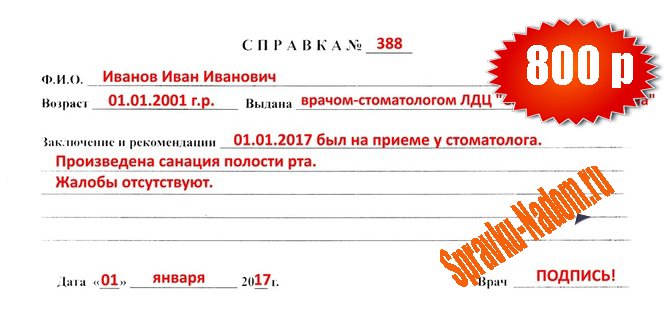 Вывод:Практически все медкомиссии включают в себя посещение стоматолога. А это процедура не из легких. Чтобы не стоять долгие очереди, не трусится, как «смелый заяц» в коридоре, проще купить подобную справку.На нашем сайте по предоставлению медицинских услуг Купить медицинскую справку, вы можете приобрести справку, или связаться с нашими специалистами по номеру телефона:+7 (962) 913 4-99-7 или +7 (495) 227 1 03 1,наши специалисты проконсультируют вас по всем возникшим Вас вопросам. Вы также можете заказать справку с доставкойна дом, наслаждаться временем которое могло бы быть потраченным зря и никакие дантисты тогда нестрашны))) !