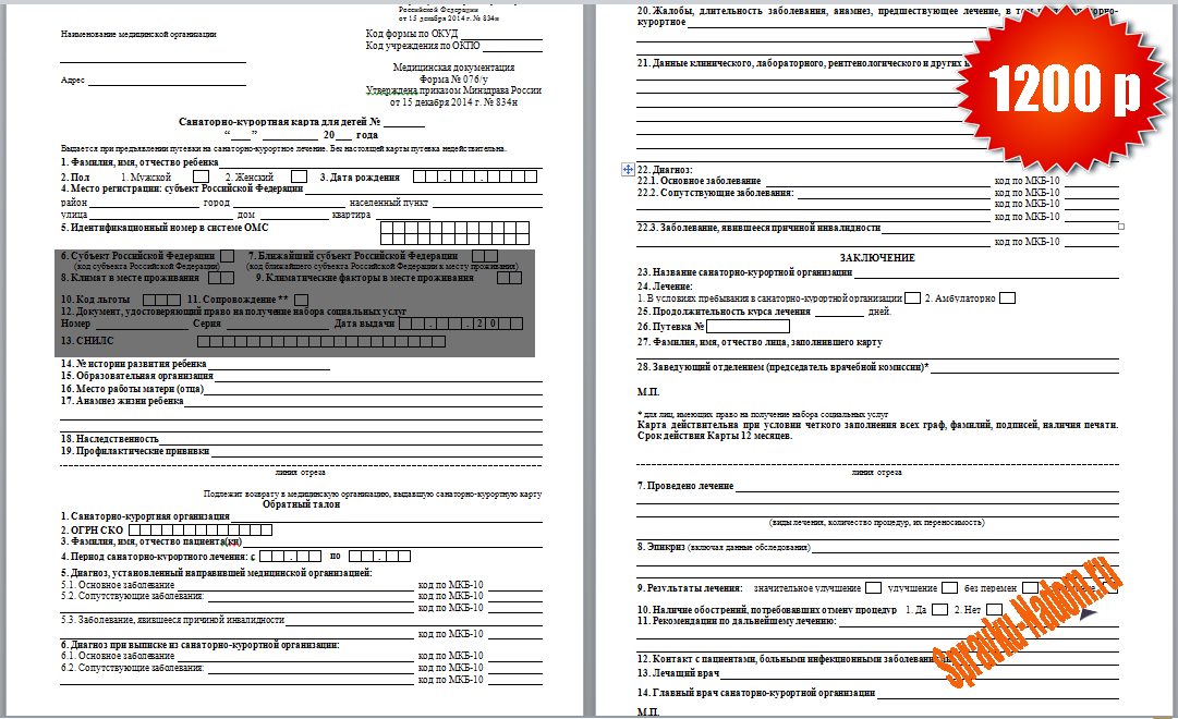 Справка в санаторий: купить